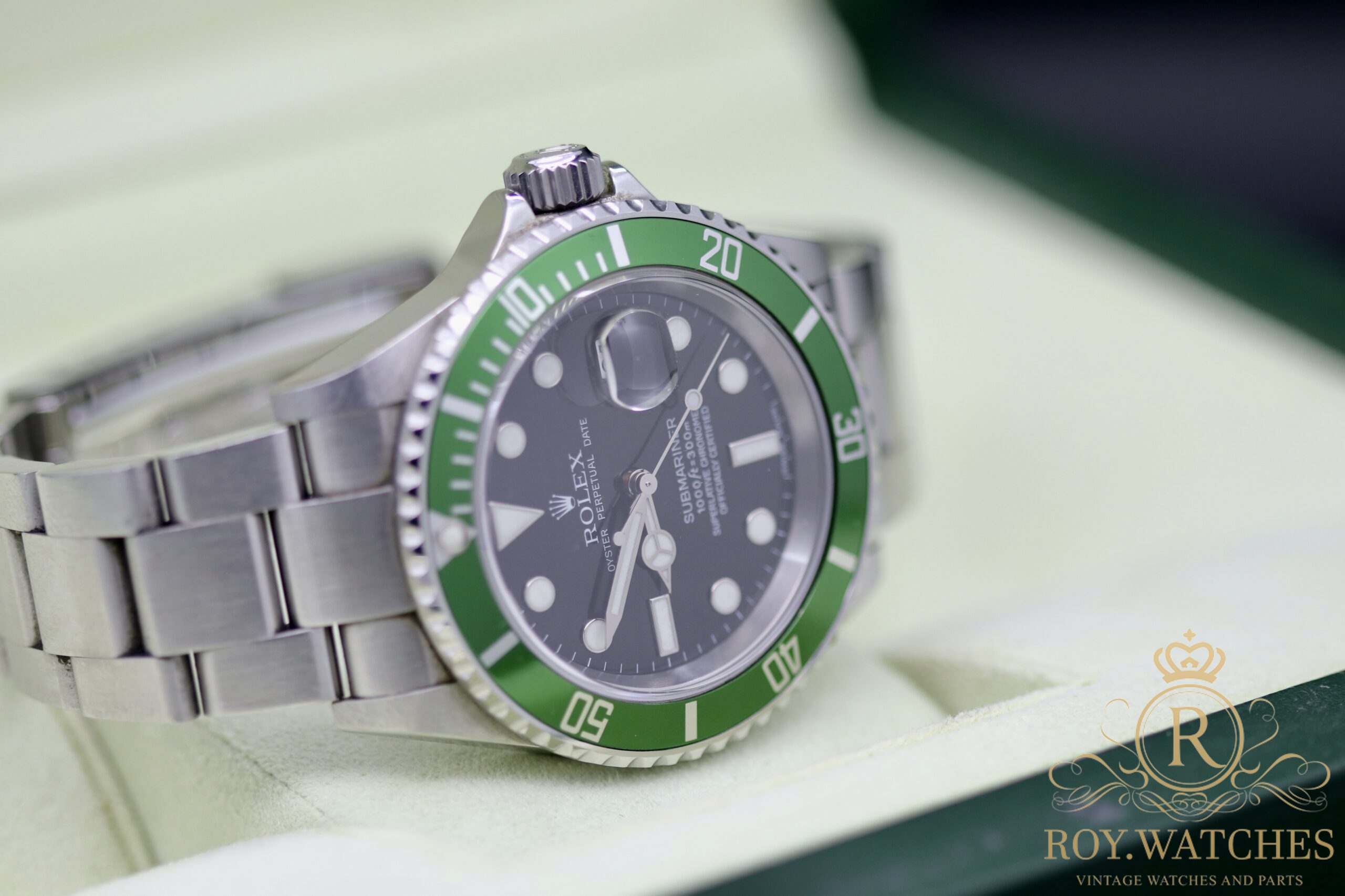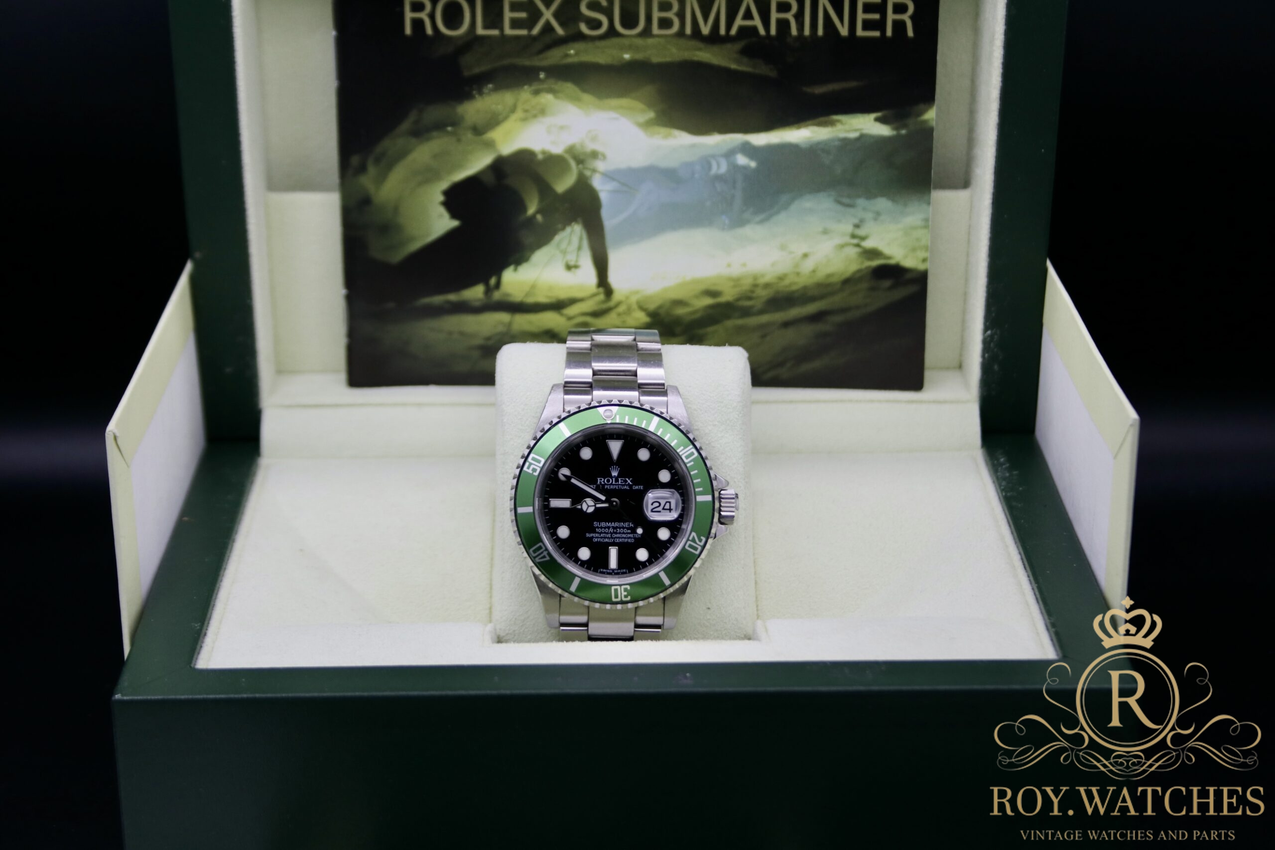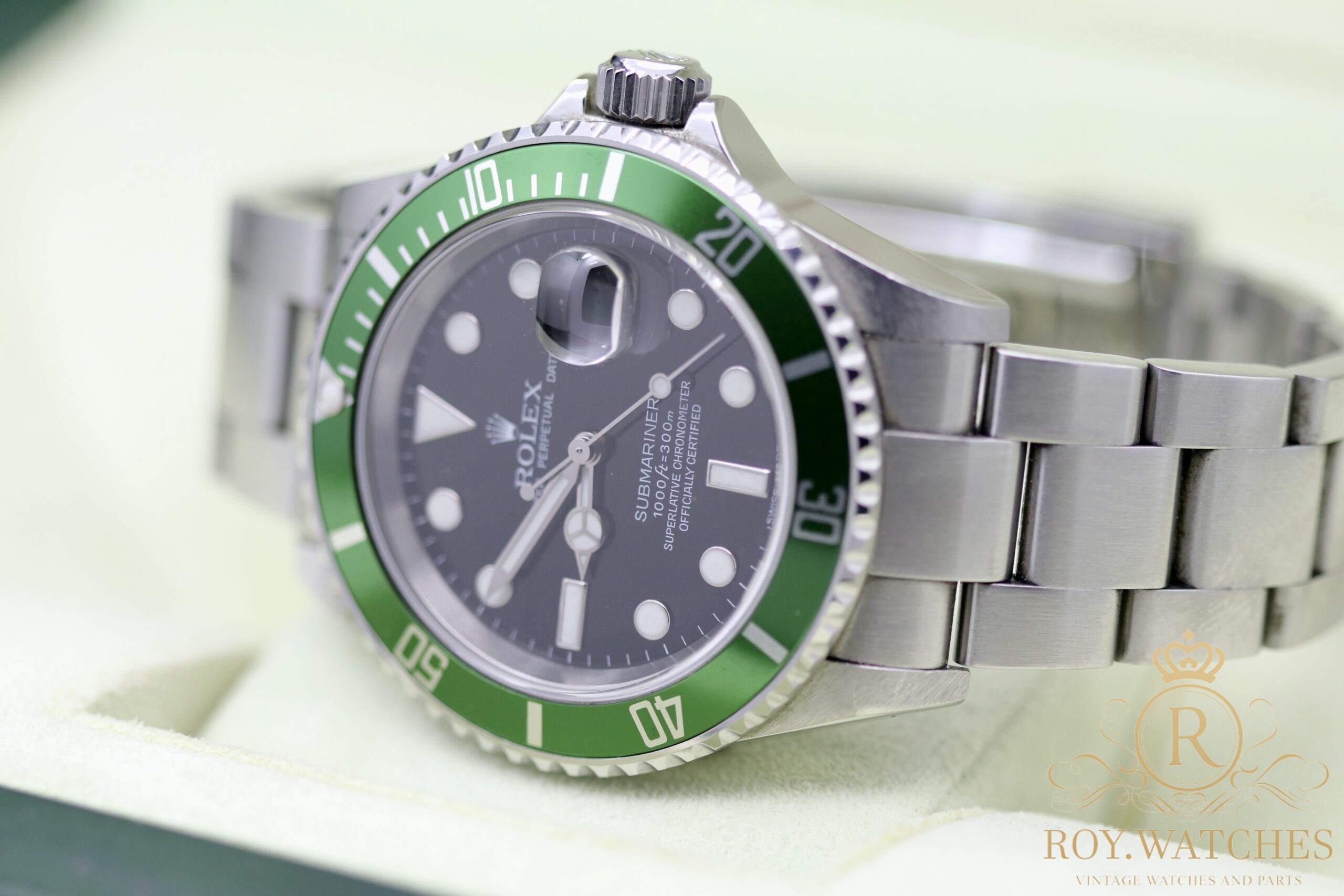 | Description: | The Rolex Submariner 16610LV „Kermit“ is in very good condition.
