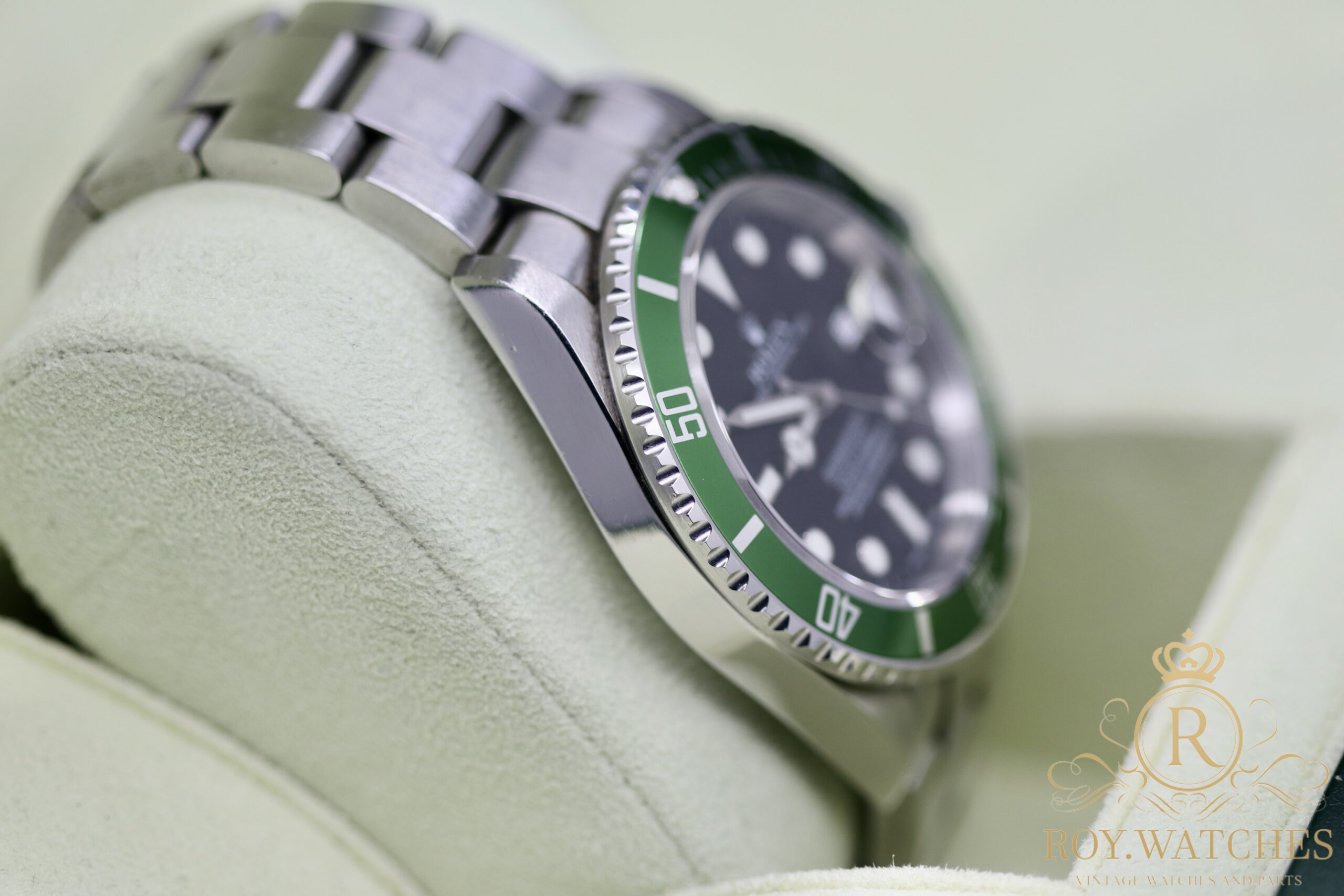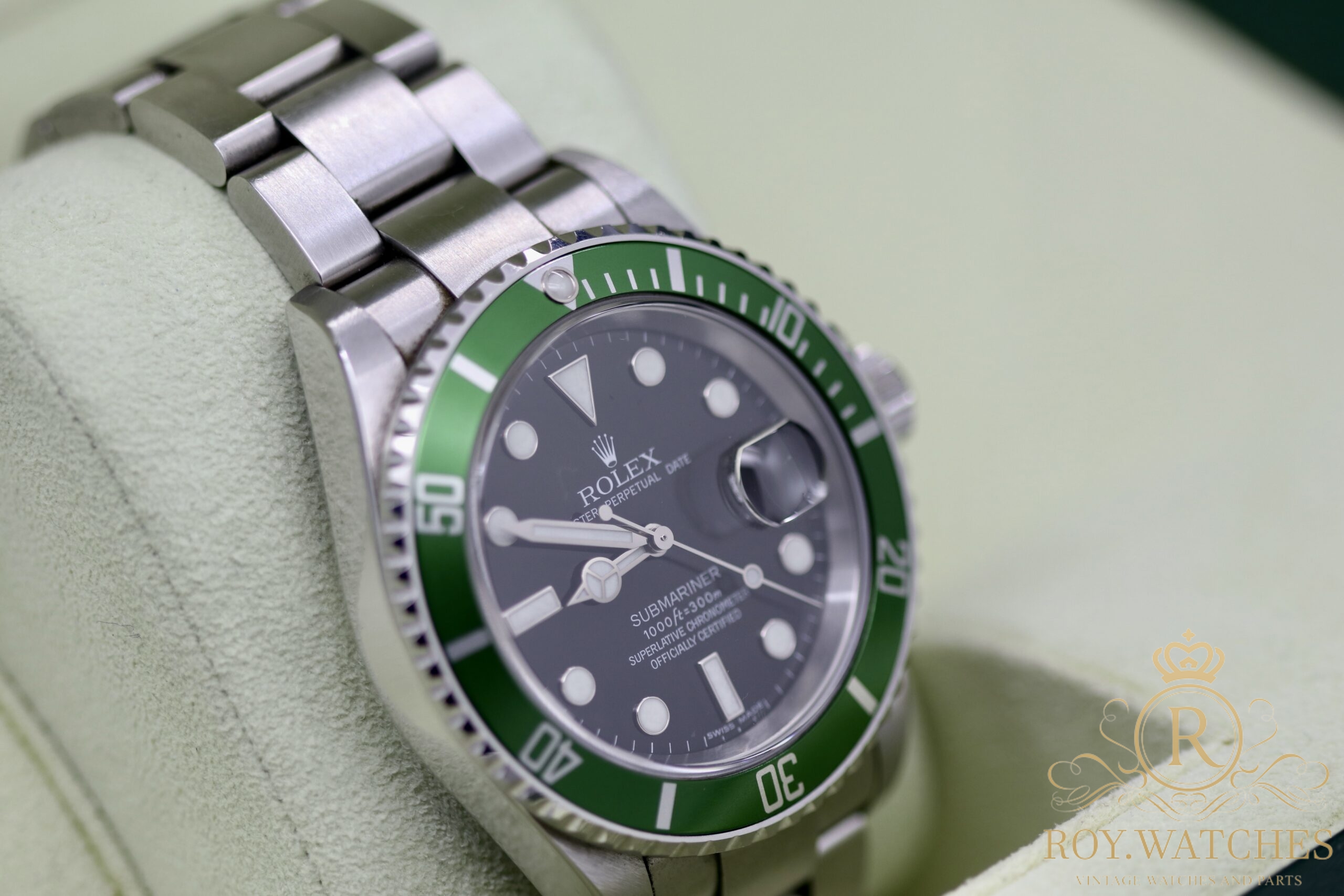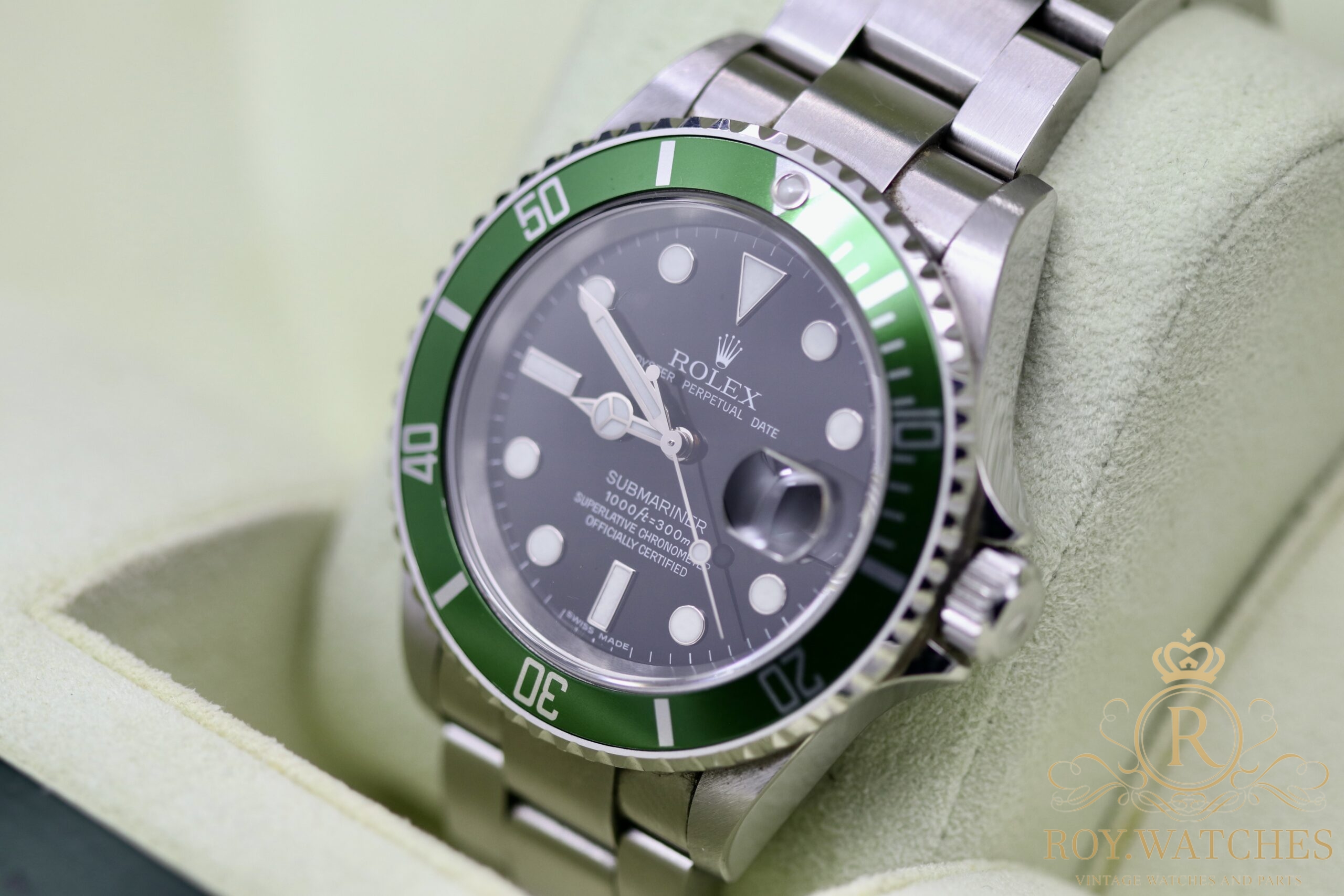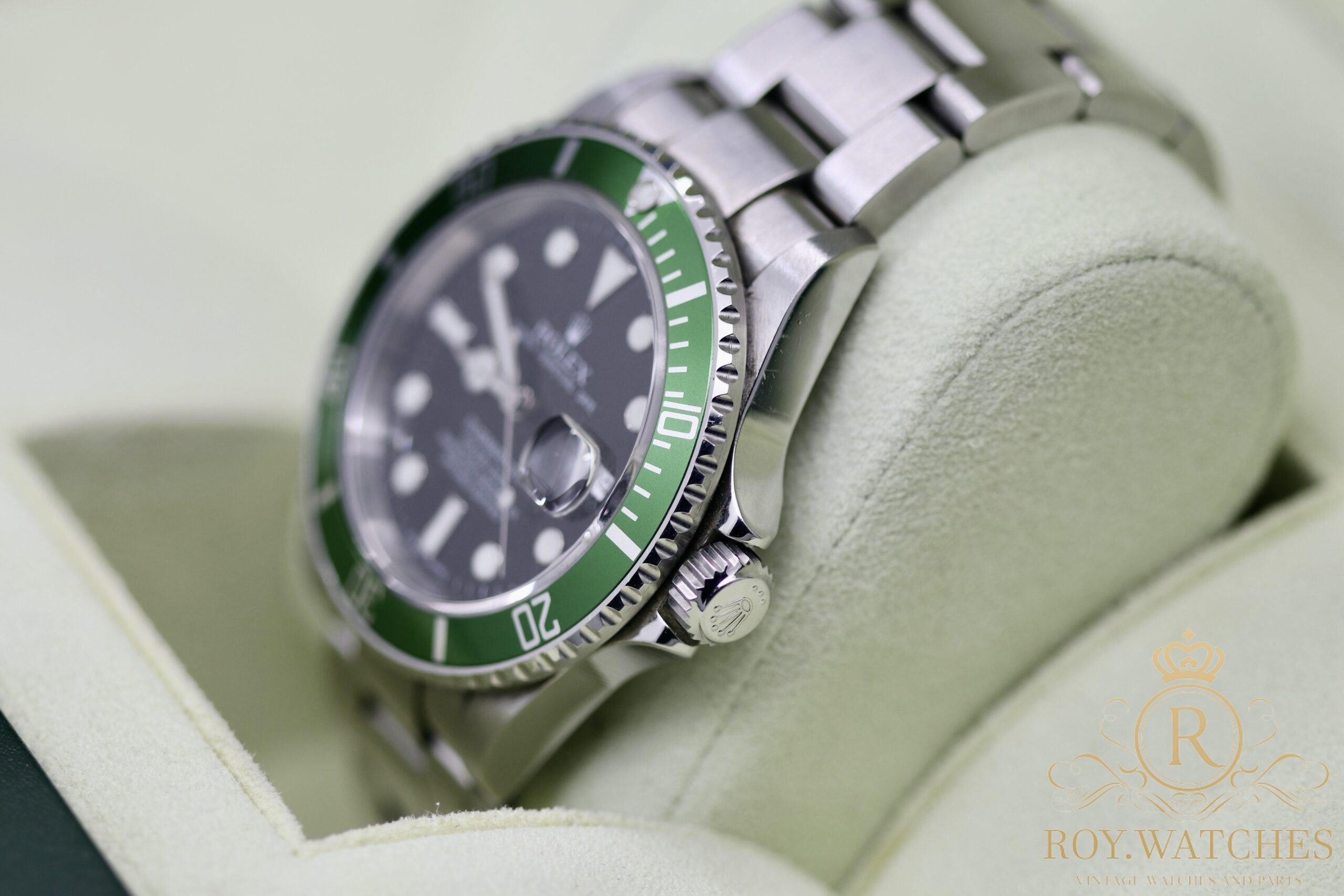 | Description: | The Rolex Submariner 16610LV „Kermit“ is in very good condition.