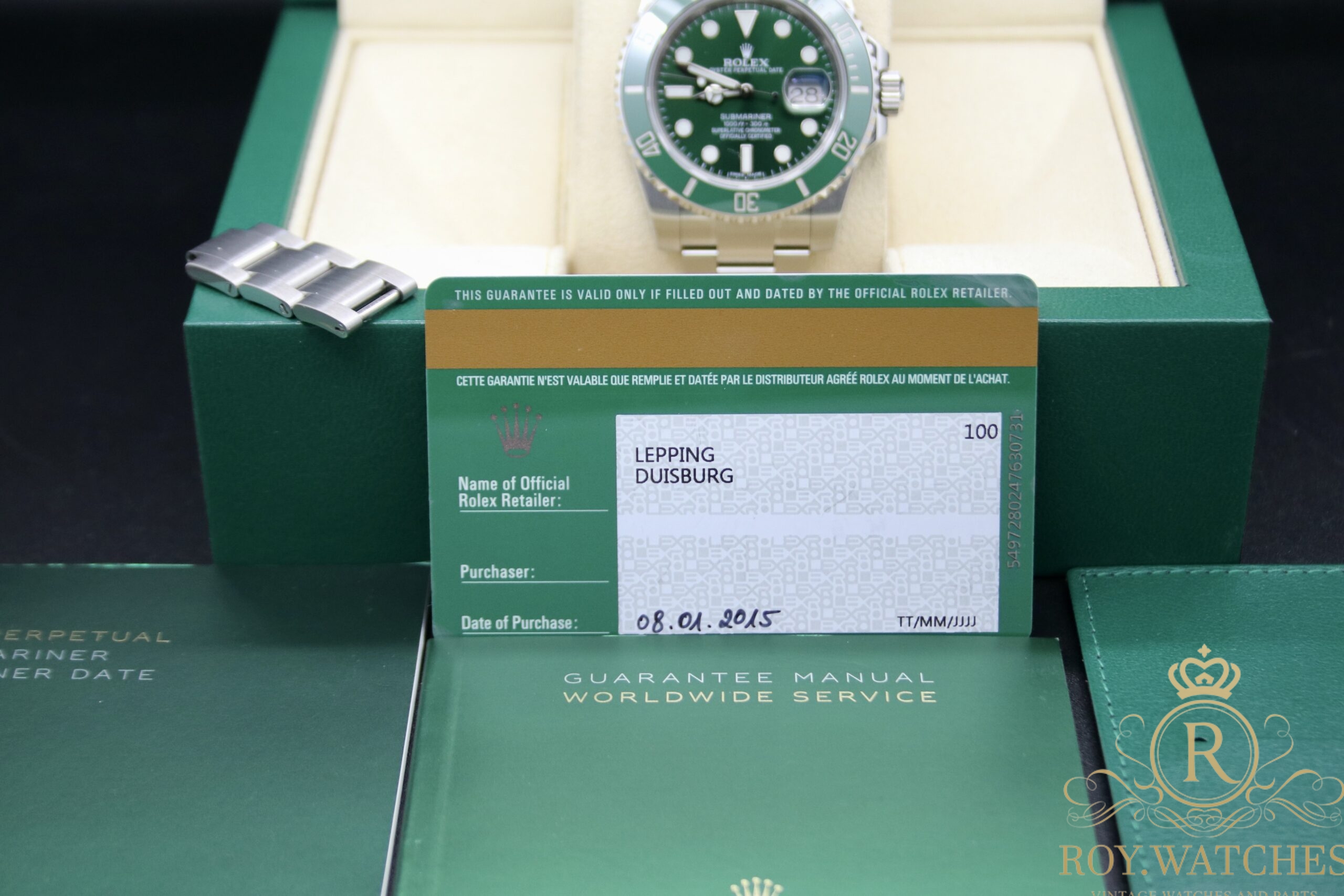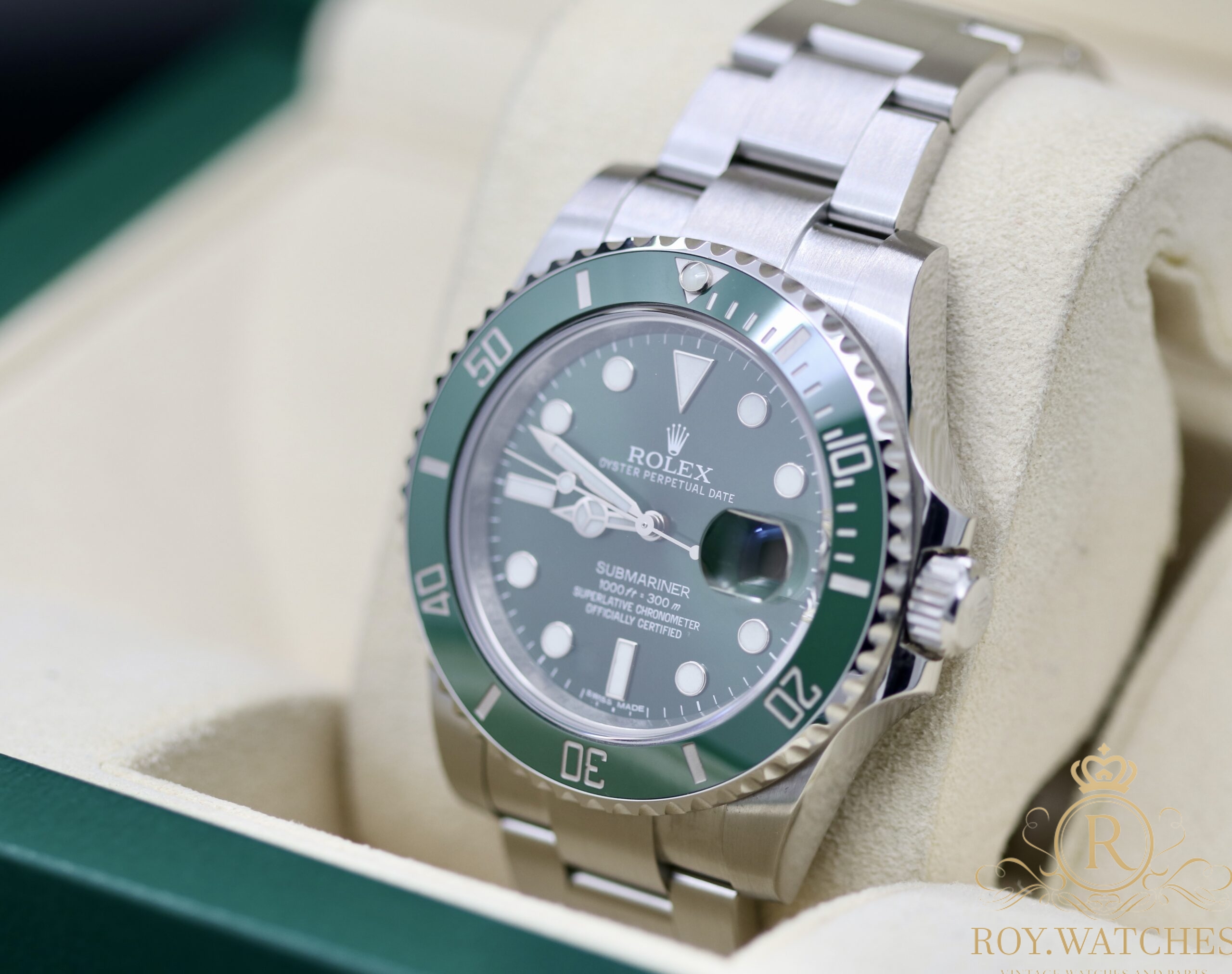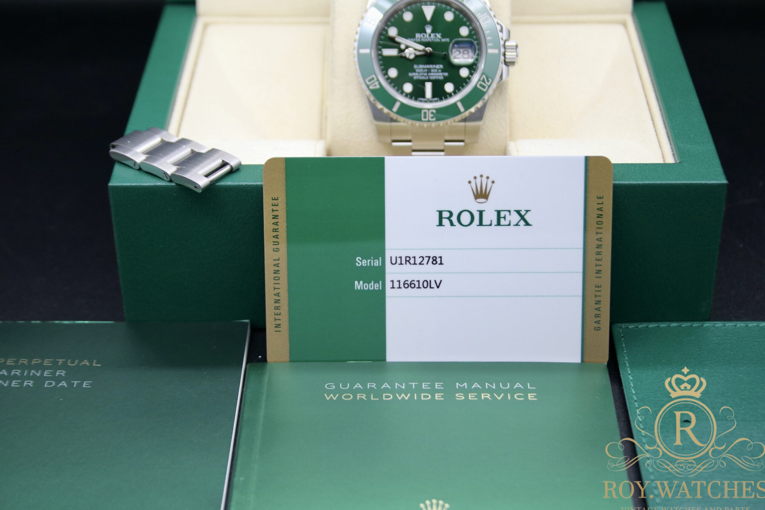 | Description: | The beautiful Rolex Submariner 116610LV „Hulk“ is in very good condition.
